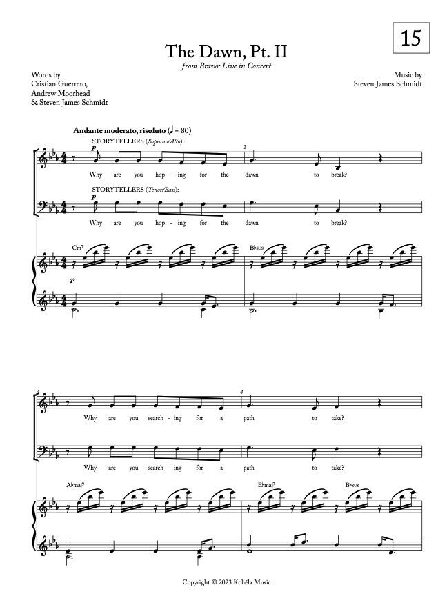 Sheet music for “The Dawn, Pt. II” from Bravo: A Musical (Live in Concert).